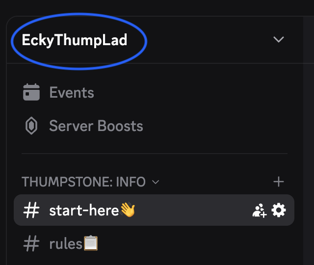You’ll need a Discord account and to join the EckyThumpLad Discord Server. Head to the #start-here channel. Read and agree to the server #rules to unlock all the Thumpstone SMP channels.